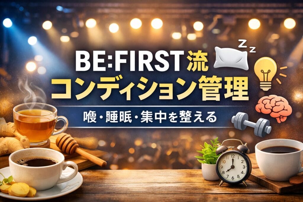 BE:FIRSTの「コンディション管理」から学ぶ:喉・睡眠・集中を“現実的に”整える方法 ライブや撮影が続く現場は、ほぼスポーツです。体力だけでなく、喉(声帯)と睡眠と集中力が同時に削られます。 そこで今回は、BE:FIRSTメンバーのインタビュー等で語ら... -