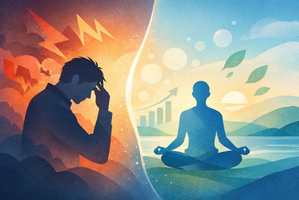 この記事は、「ストレスがある=自分が弱い」と感じて消耗している人のための整理です。目的は、ストレスを“悪”か“成長”かの二択に落とさず、観測して扱える道具に変えることです。 仕事のプレッシャーで、眠り・集中・食欲がブレている人 「気合で耐える... -