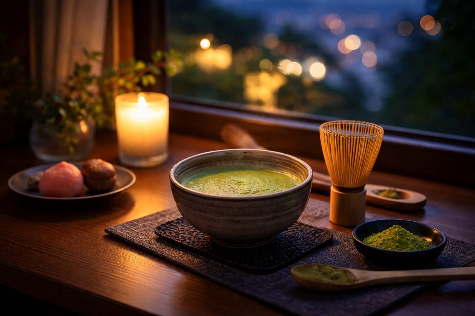 夜は脳がご褒美を欲しがちです。抹茶は香り+苦味+泡で満足感を作りやすい。 甘味を足すなら“少量”にすると、一口で終われます。